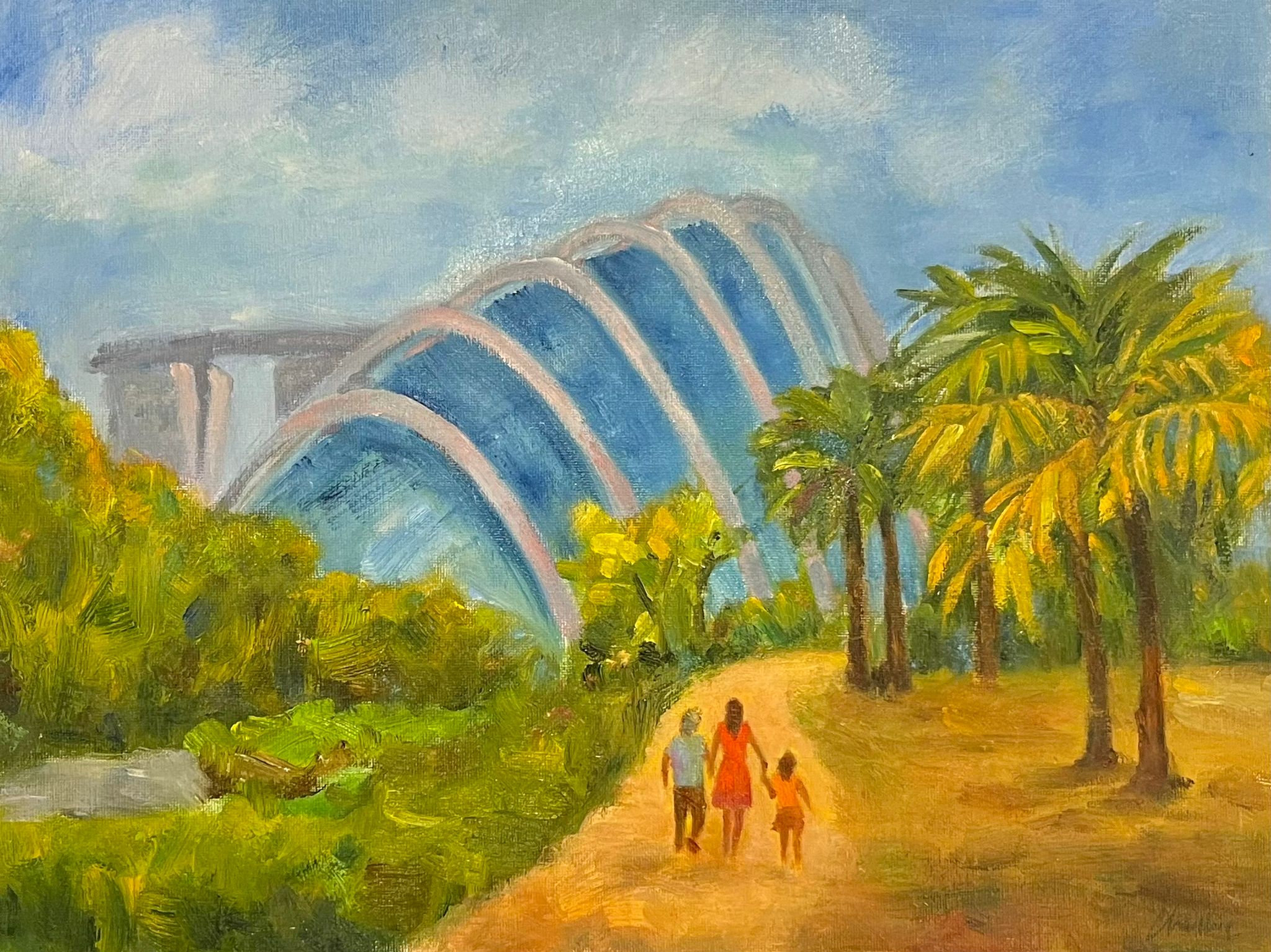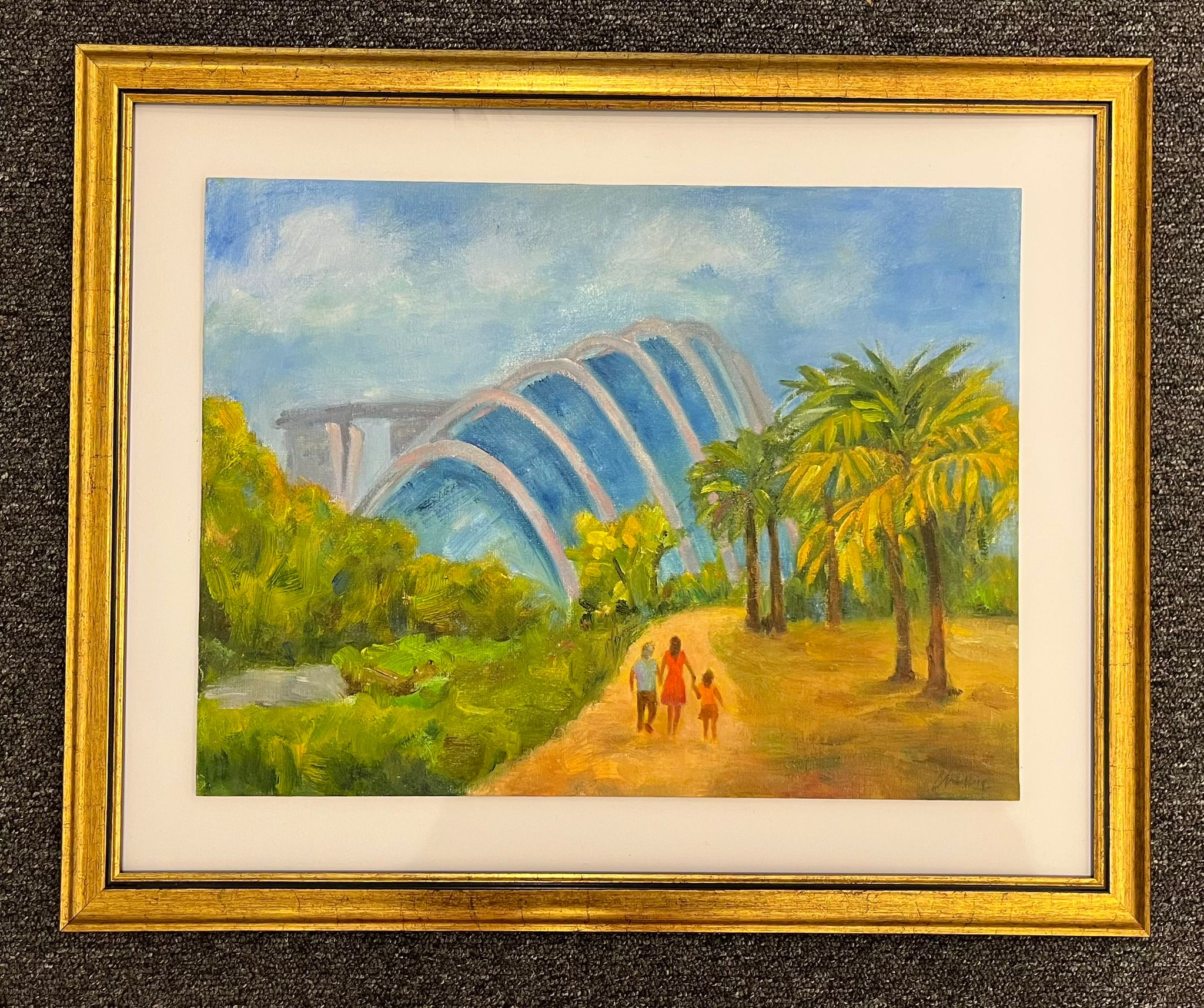 This oil on canvas painting of a family outing to Gardens by the Bay tells the story of three generations of women.