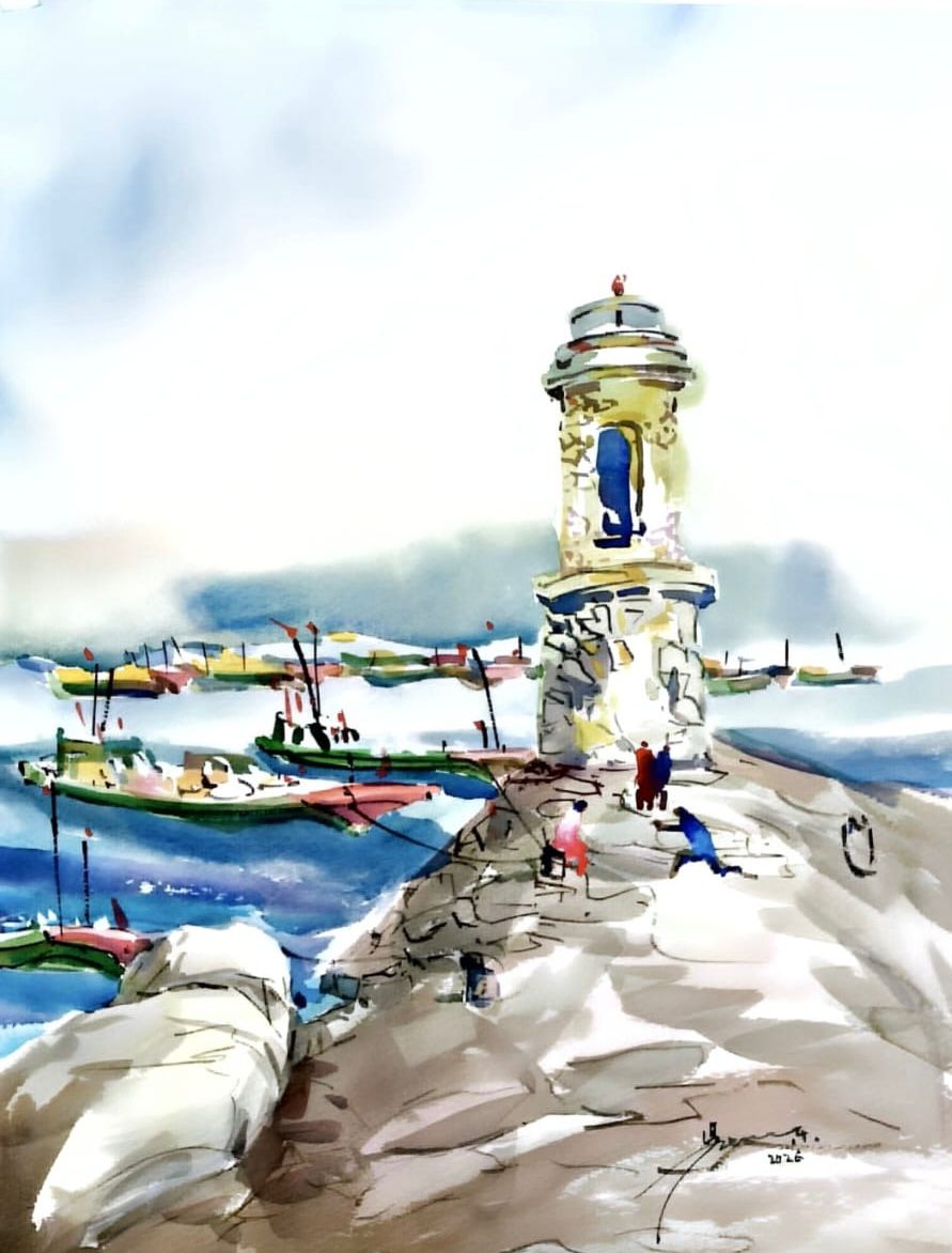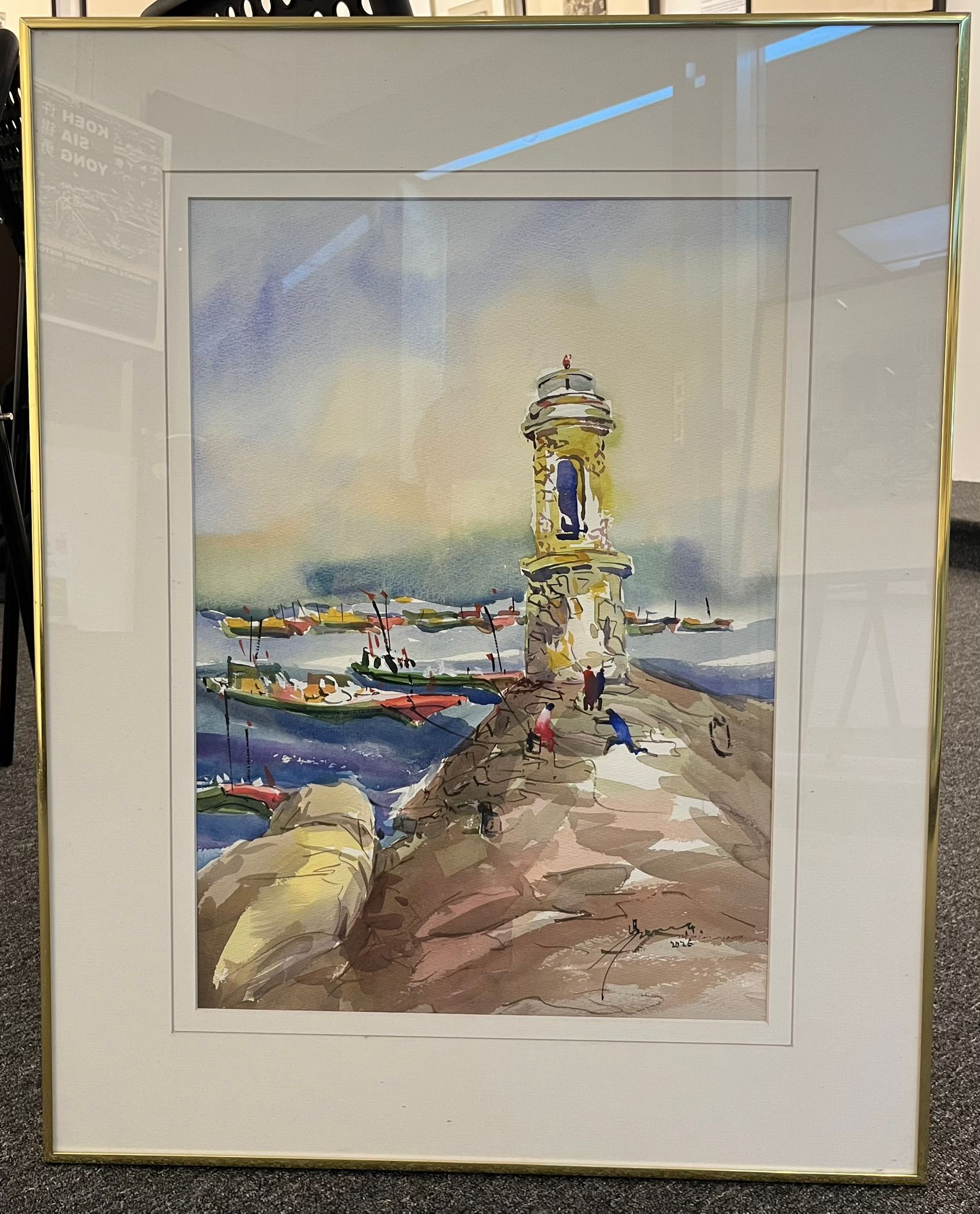 An avid traveller, Goh Khie Ching 吴启振 often captures memories of his travel adventures on paper in watercolour. This painting is a documentation of his Teochew roots in his ancestral hometown.